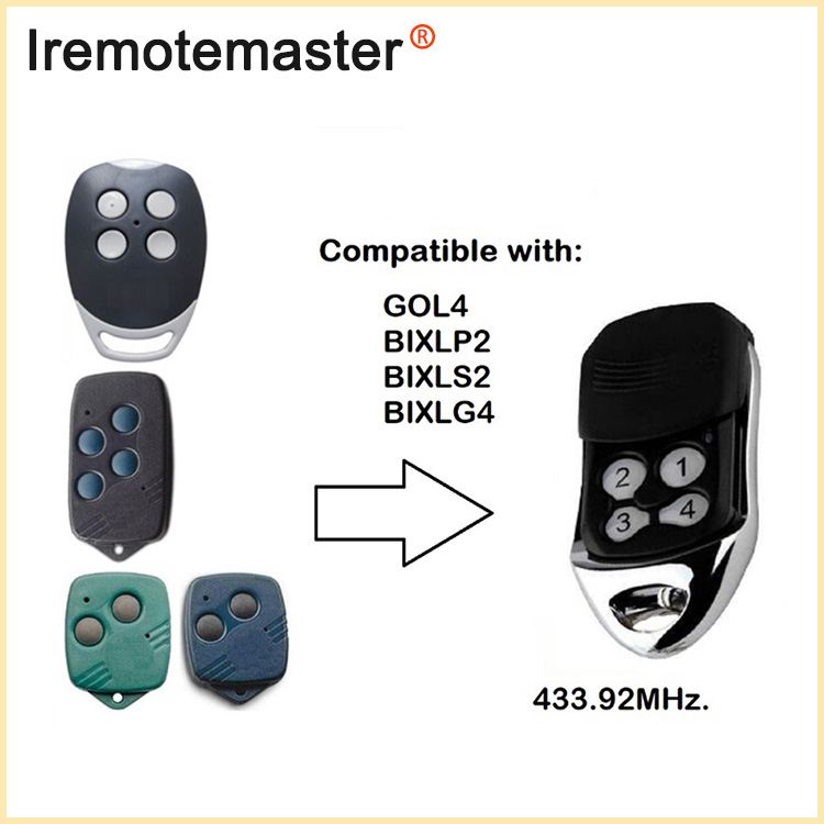 GOL4 командалық гараж есігін ашатын құрылғы үшін BIXLP2 BIXLS2 BIXLG4 GOL4 командасы BIXLP2 BIXLS2 BIXLG4 433 МГц жылжымалы кодымен үйлесімді.